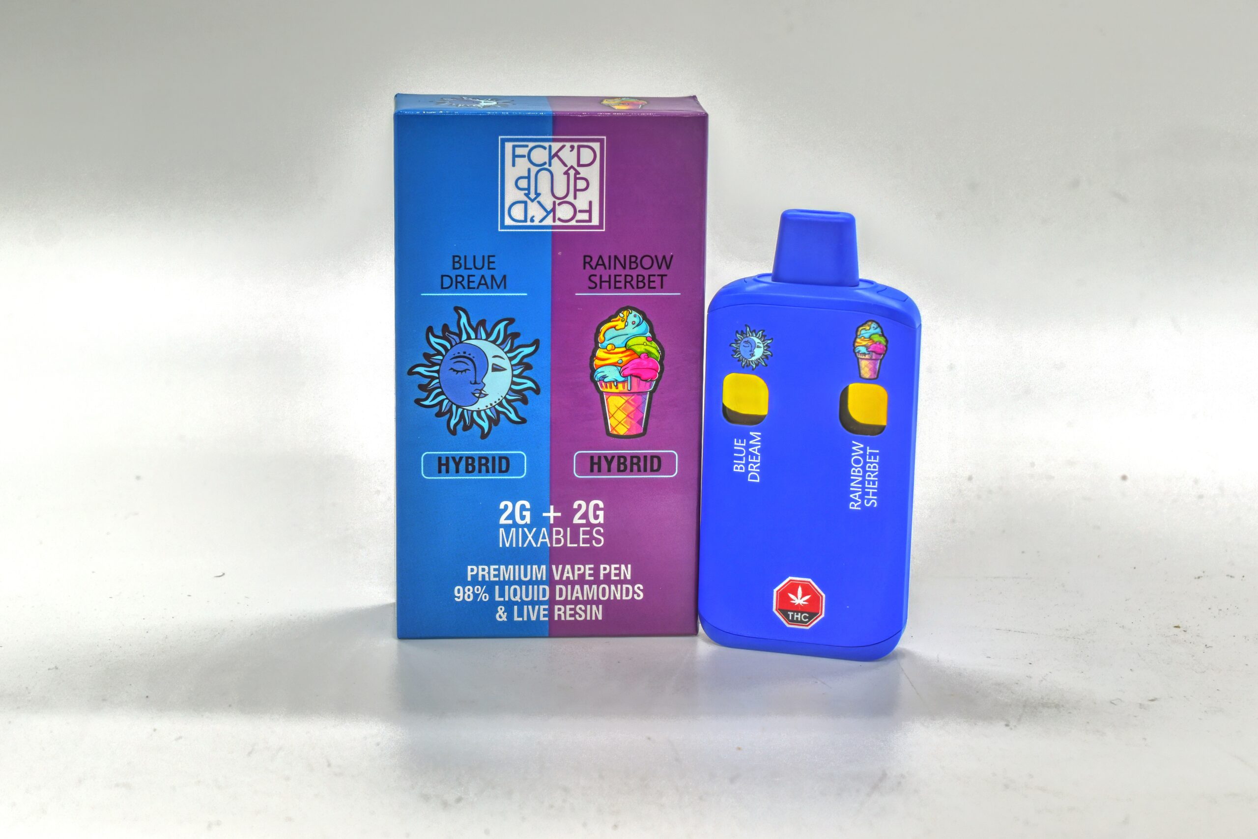 | Fun Dip-4G | Blue Dream-Rainbow Sherbet, Peach Ice- Pink Guava, Surricane – Runts, Cherry Peach – Watermelon, Apple Rings – Pina Colada, Cherry Punch – Strawberry, Jack Strer – Strawberry Cough, Orange Tsunami – Mango Kush, Gorilla Glue – Fruit Punch, Grape God – Raspberry, Orange – Pineapple Express |